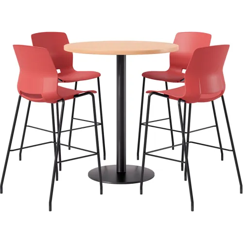 KFI 36" Round Table with 4 Imme Armless Barstools, Coral Seat/Maple Top