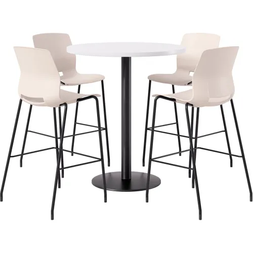 KFI 36" Round Table with 4 Imme Armless Barstools, Moonbeam Seat/Designer White Top