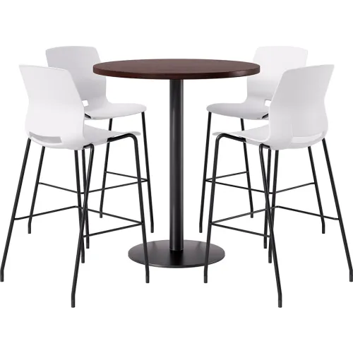 KFI 36" Round Table with 4 Imme Armless Barstools, White Seat/Espresso Top