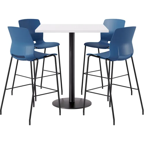 KFI 36" Square Table with 4 Imme Armless Barstools, Navy Seat/Designer White Top
