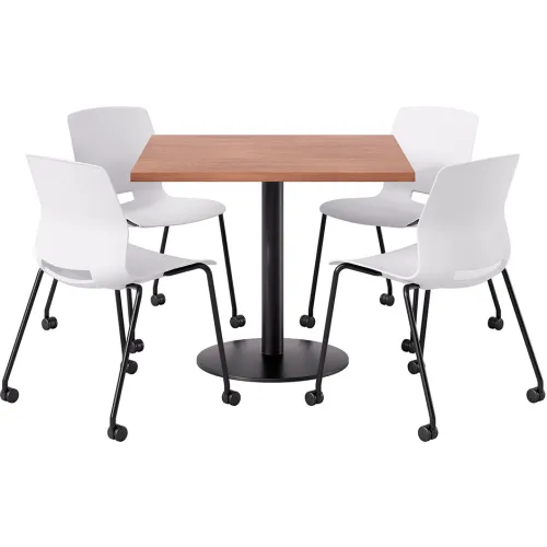 KFI 36" Square Table with 4 Imme Armless Caster Chairs, White Seat/River Cherry Top