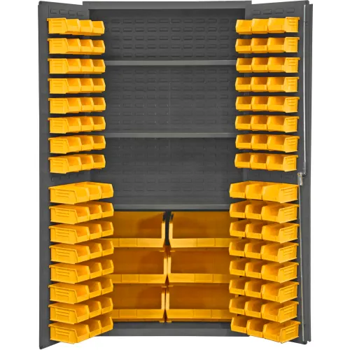 Durham Storage Bin Cabinet 501-BDLP-102-3S-95 - 102 Yellow Hook-On Bins,3 Shelves 36"W x 24"D x 72"H