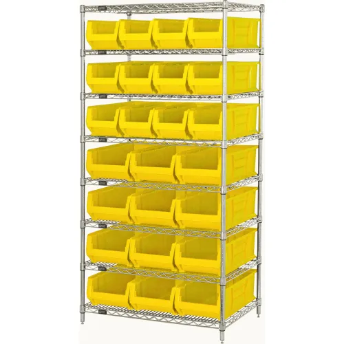 Quantum WR8-950952 Chrome Wire Shelving With 24 24"D Bins Yellow, 36x24x74