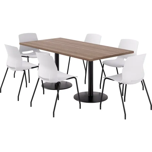 KFI 36" x 72" Table with 6 Imme Armless Chairs, White Seat/Studio Teak Top