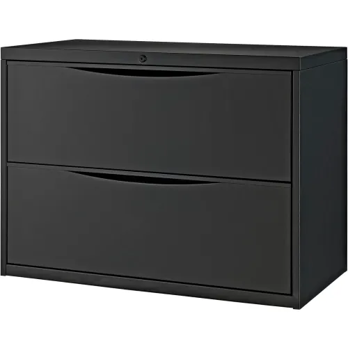 Interion® 2 Drawer Premium Lateral File Cabinet, Legal & Letter Size, 36"W x 18"D x 28"H, Black