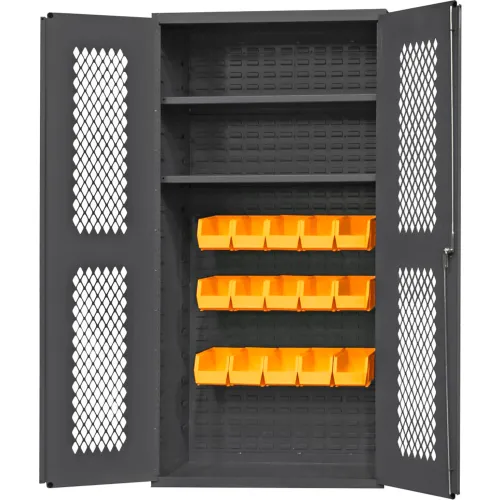 Durham Expanded Metal Door Bin Cabinet EMDC36242S15B95 - 15 Yellow Bins 2 Shelves 36"W x 24"D x 72"H