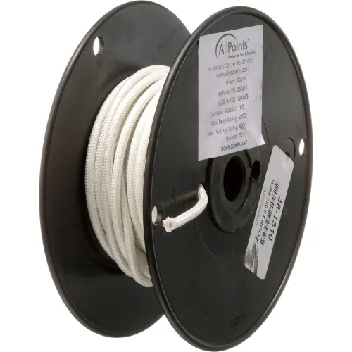 Allpoints 38-1310 High Temperature Wire; #12 Gauge; Stranded SF2; White; 50' Roll