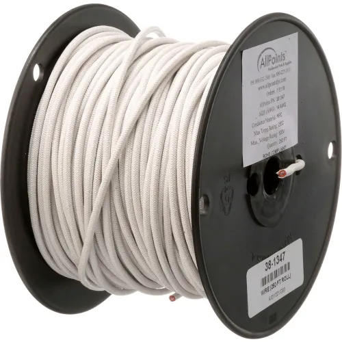 Allpoints 38-1347 High Temperature Wire; #14 Gauge; Stranded SRGN; White; 250' Roll