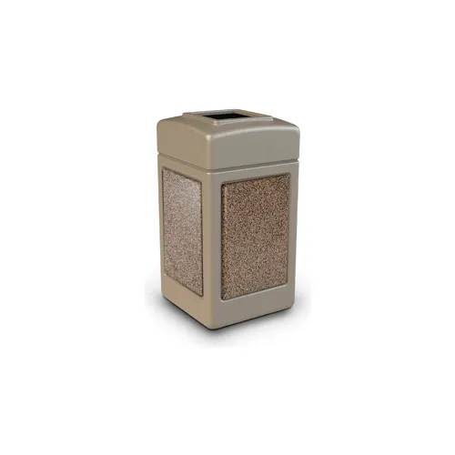 PolyTec Square Waste Container, Beige with Riverstone Stone Panels, 42-Gallon