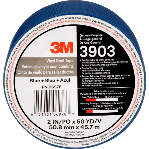 3M 3903 Vinyl Duct Tape, 2"W x 50 Yds., Blue - Pkg Qty 24