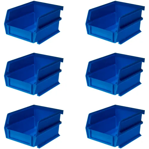 Triton Products LocBin Wall Storage, 5-3/8"L x 4-1/8"W x 3"H, Blue, Polypropylene, Pack of 6