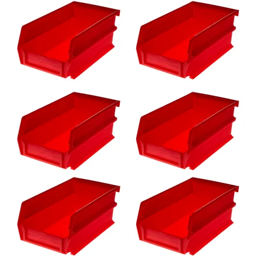 Triton Products LocBin Wall Storage, 7-3/8"L x 4-1/8"W x 3"H, Red, Polypropylene, Pack of 6
