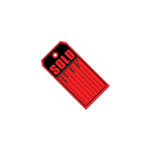 Global Industrial "Sold" Tag #5, 4-3/4"L x 2-3/8"W, Red, 1000/Pack