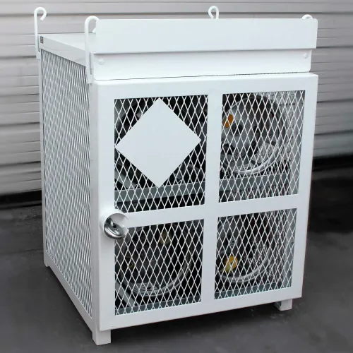 4 Capacity 33 Lbs Cylinders Heavy Duty Steel Gas Cylinder Cage 30"Wx30"Dx38"H White, Manual Close