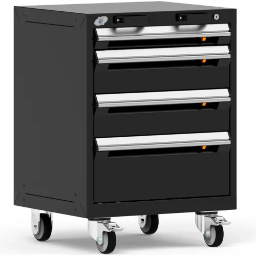 Rousseau Metal® R5BCD-2803KD-091 Heavy Duty Modular Mobile Cabinet, 4 Drawers, Black