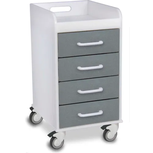 TrippNT Compact 4 Drawer Locking Medical Cart, Silver Metallic, 14"W x 19"D x 27"H