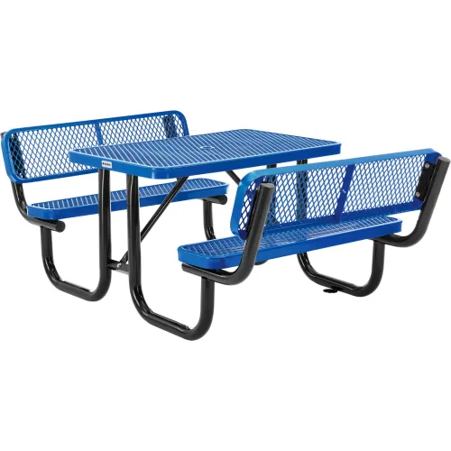 Global Industrial 4' Rectangular Picnic Table w/ Backrests, Expanded Metal, Blue