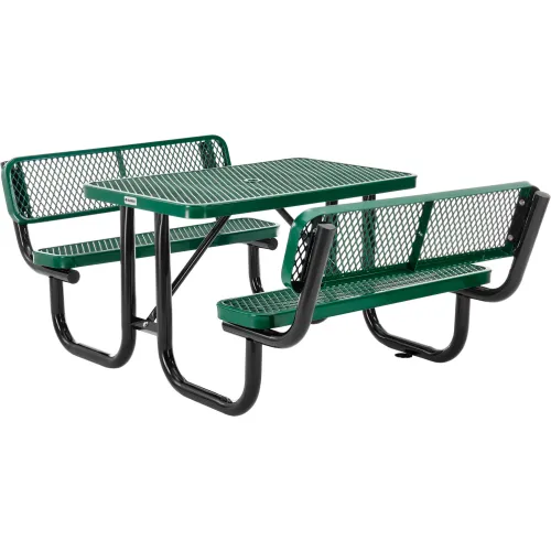 Global Industrial 4' Rectangular Picnic Table w/ Backrests, Expanded Metal, Green