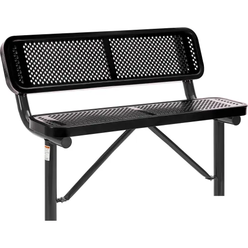 Global Industrial 4' Outdoor Steel Bench w/ Backrest, Perforated Metal, In Ground Mount, Black