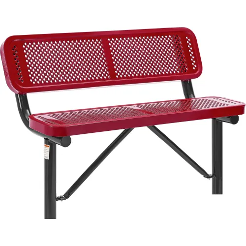 Global Industrial 4' Outdoor Steel Bench w/ Backrest, Perforated Metal, In Ground Mount, Red