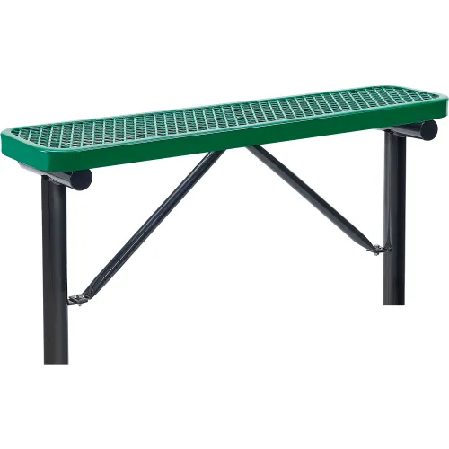 Global Industrial 4' Outdoor Steel Flat Bench, Expanded Metal, In Ground Mount, Green