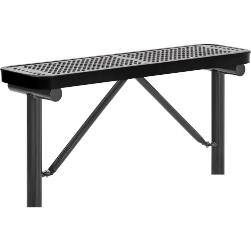 Global Industrial 4' Outdoor Steel Flat Bench, Perforated Metal, In Ground Mount, Black