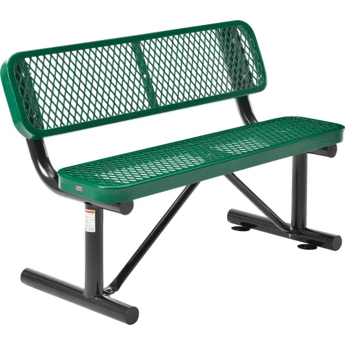 Global Industrial 4' Outdoor Steel Bench w/ Backrest, Expanded Metal, Green