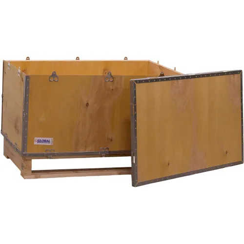 Global Industrial 4 Panel Hinged Shipping Crate w/Lid & Pallet, 35-1/4"L x 21-1/4"W x 16-1/2"H