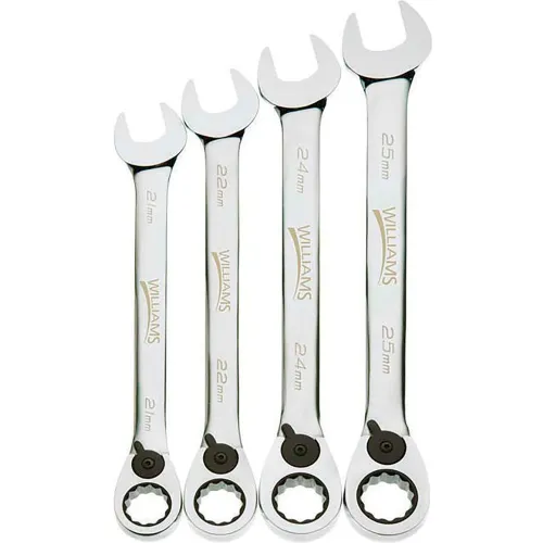 Williams® 4 Piece 21mm to 25mm Ratcheting Combination Wrench Set, Chrome