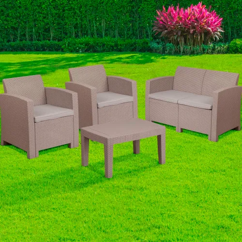 Flash Furniture® 4 Piece Faux Rattan Outdoor Sofa Set, Light Gray