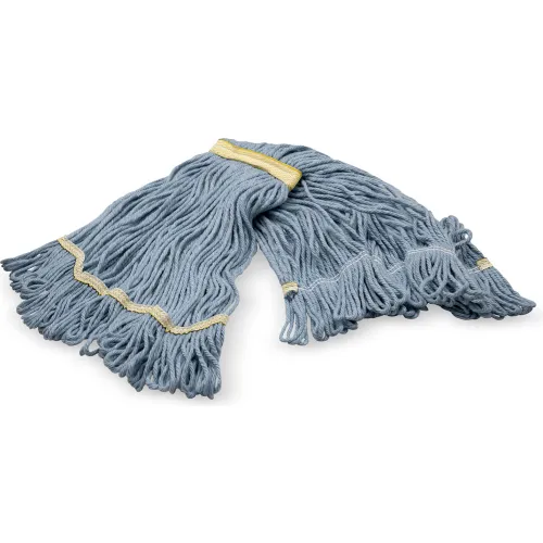 Carlisle® 4-Ply Cotton Blend Looped End Mop w/ 1" Yellow Band, Small, Blue - Pkg Qty 12