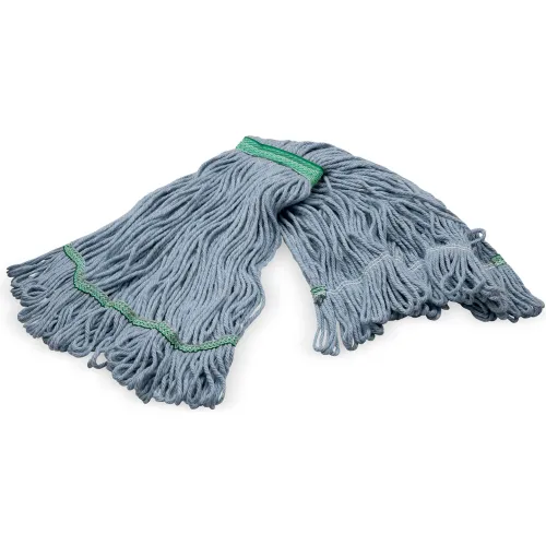 Carlisle® 4-Ply Looped End Mop w/ 1" Green Band, Medium, Blue - Pkg Qty 12