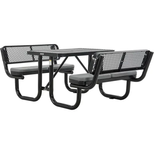 Global Industrial 4' Rectangular Picnic Table w/ Backrests & Cushions, Expanded Metal, Black