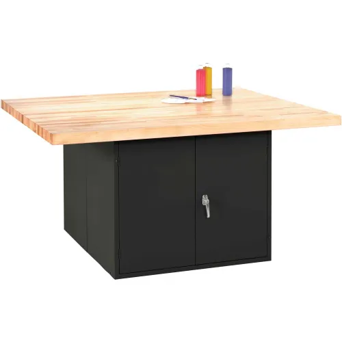 Diversified Spaces 4 Station Workbench w/ 2 Cabinets, No Vises, 64"W x 54"D, Black