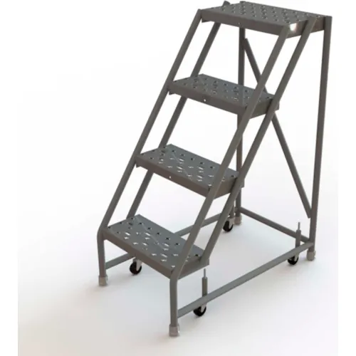 4 Step 16"W 10"D Top Step Steel Rolling Ladder, Perforated Tread, No Handrail - KDSR004166