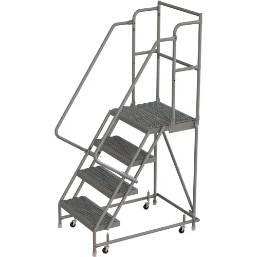 4 Step 24"W 30"D Top Step Steel Rolling Ladder, Grip Strut Tread, 42" Handrail - KDSR104242-D3