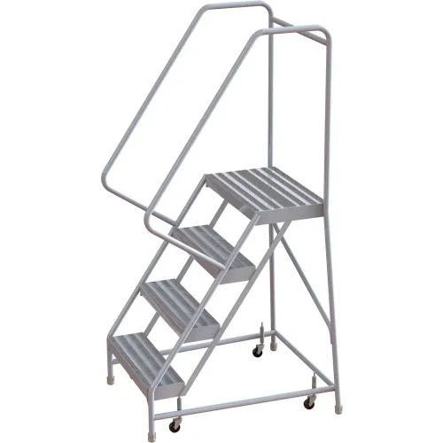 4 Step Aluminum Rolling Ladder, 16"W Ribbed Step, 30" Handrails - WLAR104164
