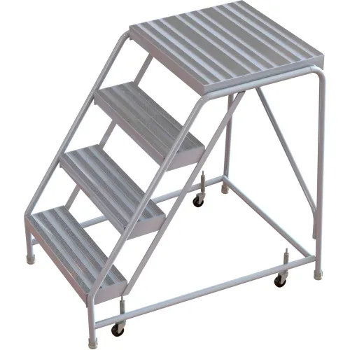 4 Step Aluminum Rolling Ladder, 16"W Ribbed Tread, 21"D Top Step, W/O Handrails - WLAR004164-D4