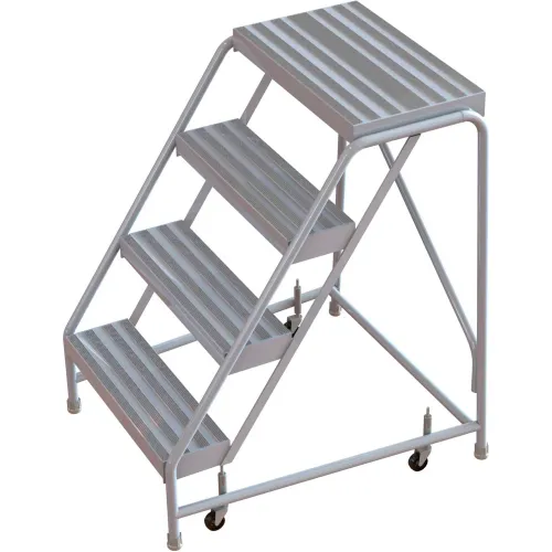 4 Step Aluminum Rolling Ladder, 24"W Ribbed Tread, 14"D Top Step, No Handrails - WLAR004244