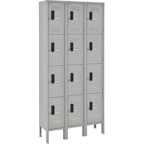 Global Industrial 4-Tier 12 Door Digital Locker, 36"W x 15"D x 78"H, Gray, Assembled