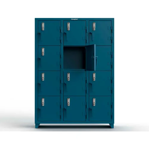 Strong Hold 4-Tier 12 Door Extra Heavy Duty Digital Locker, 54"W x 18"D x 75"H, Blue, Assembled
