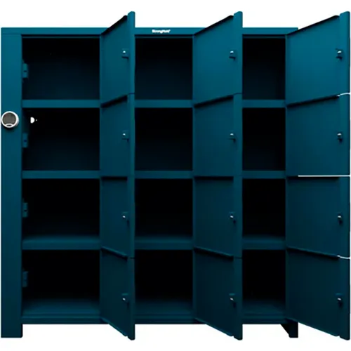 Strong Hold 4-Tier 12 Solid Door Smart Access Locker, 72"W x 24"D x 75"H, Blue, Assembled
