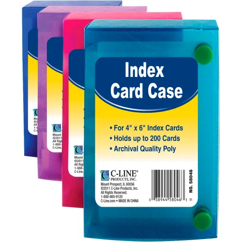 C-Line Products 4" x 6" Index Card Case, Assorted Colors, 24 Index Card Case/Set