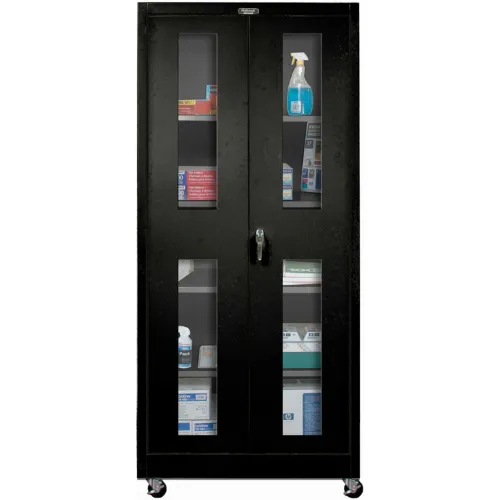 Hallowell 400 Series Clear View Cabinet Storage Cabinet, 36"W x 24"D x 72"H, Assembled, Ebony