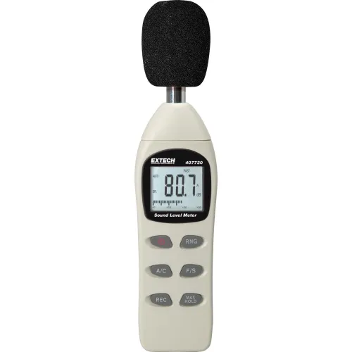 Extech 407730-NIST Digital Sound Level Meter, Plastic, 4 AAA batteries, NIST Certified