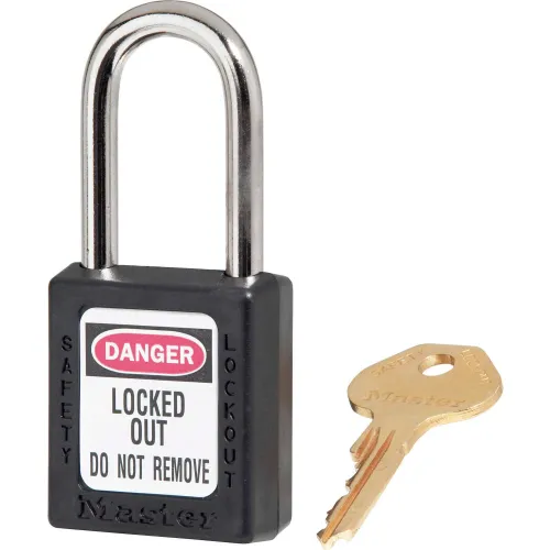 Master Lock® Thermoplastic Zenex™ 410KAS6BLK Safety Padlock 1-1/2"H Shackle, Black 6/Set