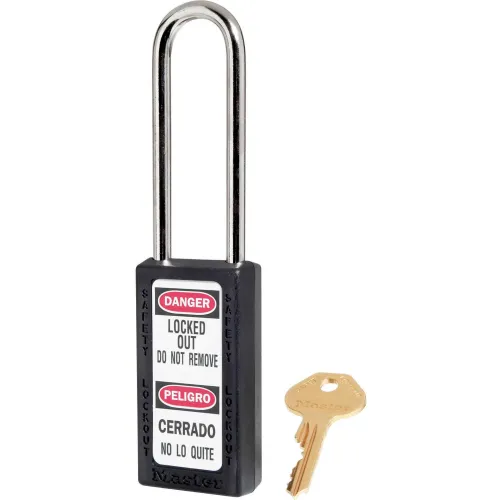 Master Lock® Thermoplastic Zenex™ 411KALTBLK Safety Padlock, 1-1/2"W x 3"H Shackle, Black