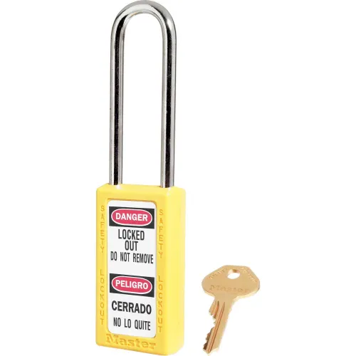 Master Lock® Thermoplastic Zenex™ 411KALTYLW Safety Padlock 1-1/2"W x 3"H Shackle, Yellow