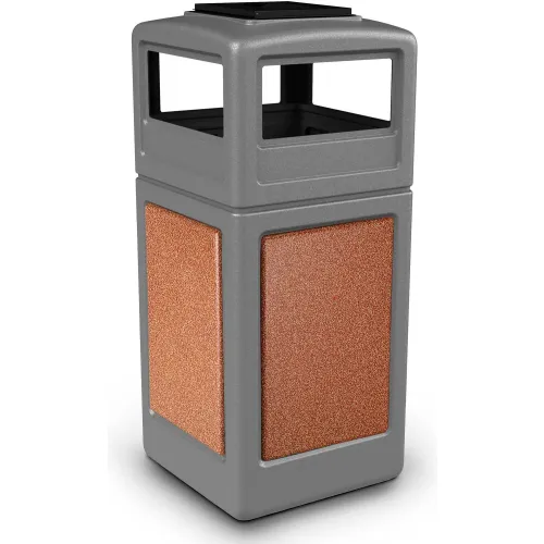 PolyTec Square Waste Container w/Ashtray Lid, Gray w/Sedona Stone Panels, 42-Gallon