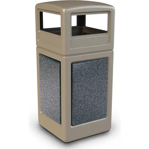 PolyTec Square Waste Container w/Dome Lid, Beige w/Pepperstone Stone Panels, 42-Gallon